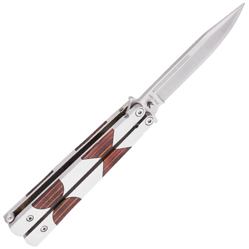 Ніж зручний у застосуванні та носінні на кожен день. Клинок виготовлений із легованої нержавіючої сталі марки 440С. Сталь відрізняється високою твердістю і в’язкістю, вона легко правиться і заточується, довго тримає заточування і не сприйнятливий до вологи. Окрім іншого, балісонги – це ще й корисний інструмент: практика обертання цим ножем цілком добре розвиває рухливість ваших пальців і кисті, а також координацію рухів взагалі. Однак, особливо на етапі освоєння маніпуляцій з ножем-метеликом, потрібно дотримуватися техніки безпеки і що необережне поводження з таким гострим ножем може призвести до порізів.