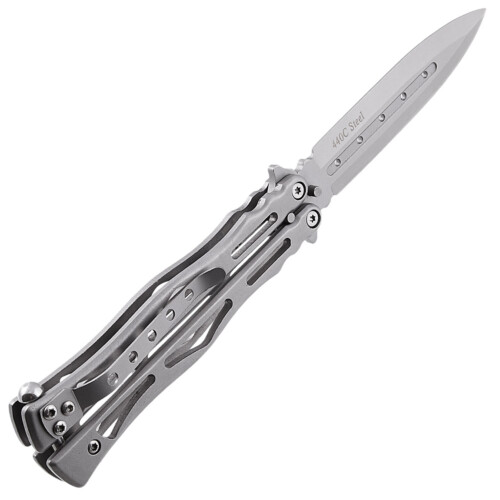 Нож удобен в применении и ношении на каждый день. Клинок изготовлен из легированной нержавеющей стали марки 440 С. Сталь отличается высокой твердостью и вязкостью, она легко правится и затачивается. Долго держит заточку, и не восприимчив к влаге. Нож за счет формы клинка, сочетает в себе необычное сочетание, балисонга и кинжала. Также имеется клипса, для удобства ношения.