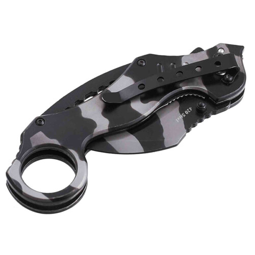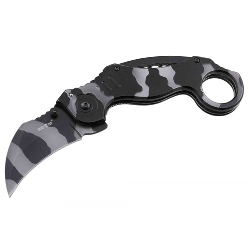 Ручка ножа – два сталеві лайнери з металевими накладками, з’єднані за допомогою гвинтів та бонок. Ручка має кілька вигинів і виїмок з насічками, що є не тільки елементом дизайну, але й ухоплюють хват. За рахунок чого ручка дуже ергономічна.
