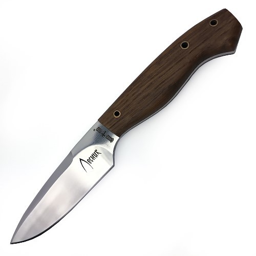 Универсальный нескладной нож является прекрасным режущим инструментом для охотников, рыбаков и туристов. Клинок изготовлен из нержавеющей стали марки 65Х13. Сталь отличается высокой твердостью и вязкостью, она легко правится и затачивается, долго держит заточку, и не восприимчив к влаге. Рукоять изготовлена из дерева, которая прошла необходимую обработку, и рукоять устойчива к влаге и воде. Рукоять хорошо удерживается в руке, благодаря оптимальной форме и объему. Для удобства ношения имеются чехол из кожи.