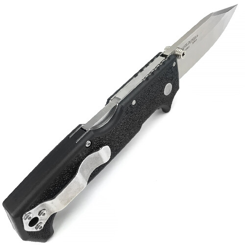 Клинок из стали 8Cr13MoV выходит в рабочее положение при помощи шпенька и надежно фиксируется замком Tri-Ad lock.