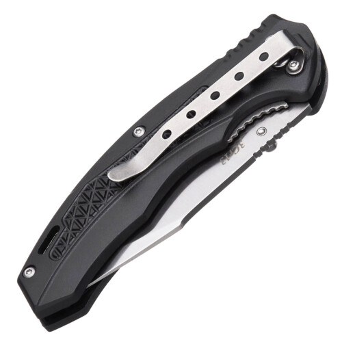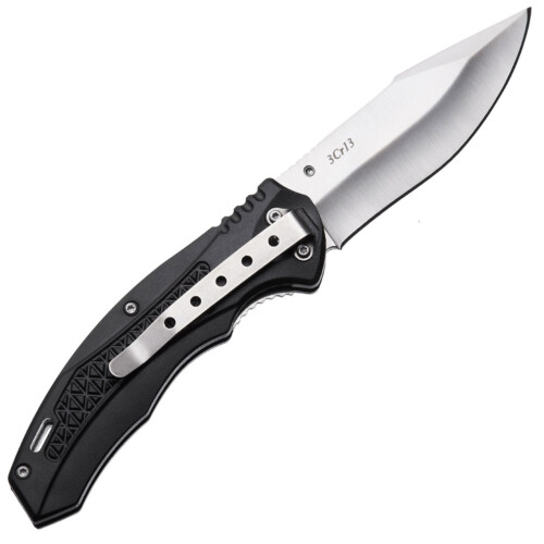 Нож для ежедневного ношения (EDC). Клинок изготовлен из нержавеющей стали марки 3Cr13MoV, сталь не восприимчива к влаге, довольно высокая вязкость, легко правится и затачивается. В открытом положении клинок фиксируется замком Liner Lock. Это современный, распространенный и надежный замок, который гарантирует, что нож не сложится при больших нагрузках. Рукоять изготовлена из пластика, который надежен и не боится влаги. Открывается нож с помощи шпенька. Нож имеет клипсу для удобного ношения в кармане.