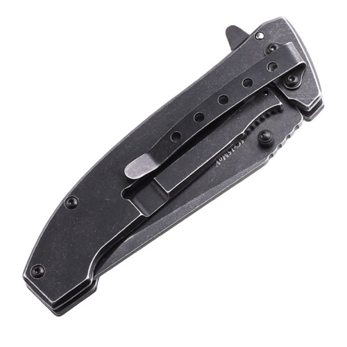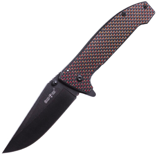 Нож для ежедневного ношения (EDC). Клинок изготовлен из нержавеющей стали 5Cr15MoV. Сталь отличается высокой твердостью и вязкостью, она легко правится и затачивается, долго держит заточку, и не восприимчив к влаге. В открытом положении клинок фиксируется замком Liner Lock. Это современный, распространенный и надежный замок, который гарантирует, что нож не сложится при больших нагрузках. Рукоять изготовлена из полимера G-10, который надежен и не боится ни влаги ни перепадов температуры. Открывается нож с помощи флиппера и шпенька. Нож имеет клипсу для удобного ношения в кармане.
