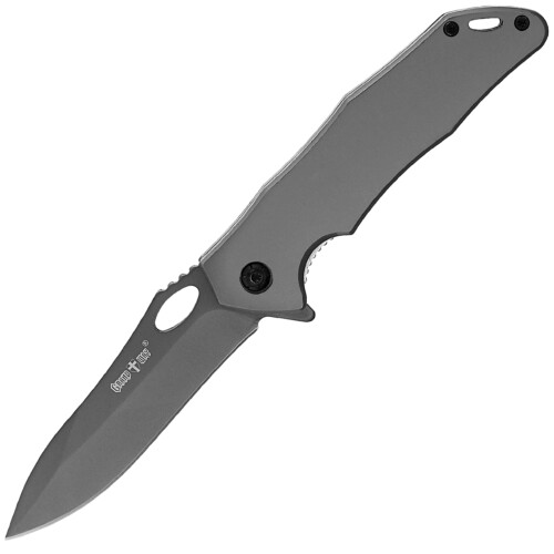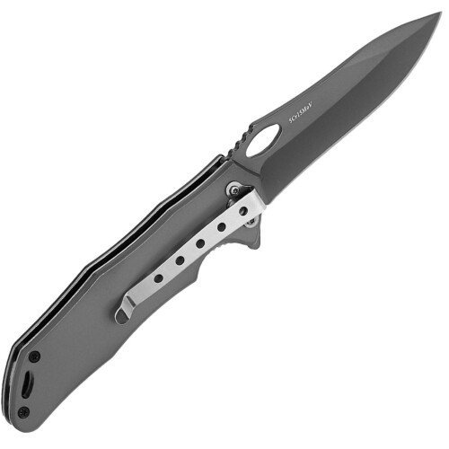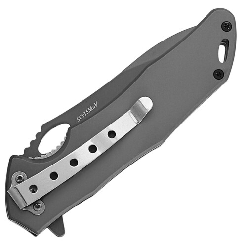 Нож для ежедневного ношения (EDC). Клинок изготовлен из нержавеющей стали 5CR15Mov. Сталь не восприимчива к влаге, довольно высокая вязкость, легко правится и затачивается. В открытом положении клинок фиксируется замком Liner Lock. Это современный, распространенный и надежный замок, который гарантирует, что нож не сложится при больших нагрузках. В осевом механизме расположена пружина ассиста, благодаря которой нож фактически является полуавтоматом. Рукоять изготовлена из металла, который надежен и не боится ни влаги ни перепадов температуры. Открывается нож с помощи флиппера и шпенька.