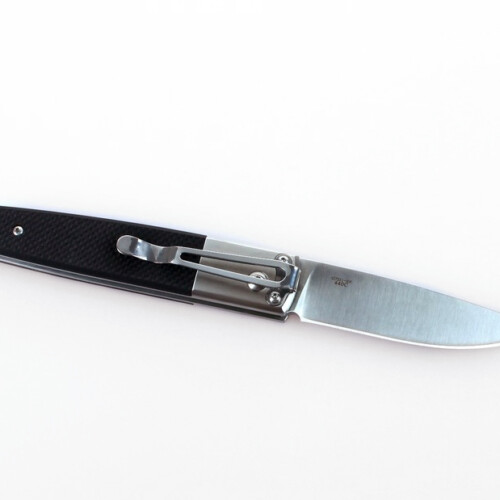 Нож для ежедневного ношения (EDC). Клинок изготовлен из легированной нержавеющей стали марки 440 С. Сталь отличается высокой твердостью и вязкостью, она легко правится и затачивается, долго держит заточку, и не восприимчив к влаге. Открывается нож с помощи кнопки и выкидного механизма. Рукоять изготовлена из полимера G-10, который надежен и не боится ни влаги ни перепадов температуры. Рукоять удобна в обхвате и не скользит даже во влажной руке. Нож имеет клипсу для удобного ношения в кармане.
