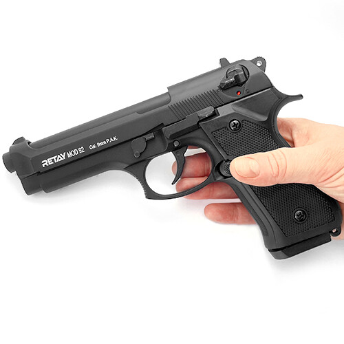 Полуавтоматическим стартовым пистолетом двойного действия, предназначен для отстрела холостых патронов. Данная модель представляет собой реплику знаменитого пистолета Beretta 92 FS, их внешний вид соответствует реально существующим боевым пистолетам.