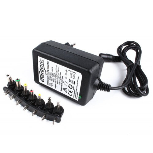 Универсальный адаптер Energenie EG-MC-008 24Вт с ручным выбором напряжения, укомплектован 7 выходными разъемами питания. Имеется защита от коротких замыканий и перенапряжений. Разъемы: Jack 2.5 мм, Jack 3,5 мм, 3.5 x 1.35 x 10 мм, 5.0 x 2.1 x 10 мм, 5.5 x 2.5 x 10 мм, 2.35 x 0.75 x 10 мм, 4.0 x 1.7 x 10 мм.